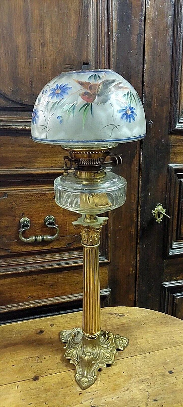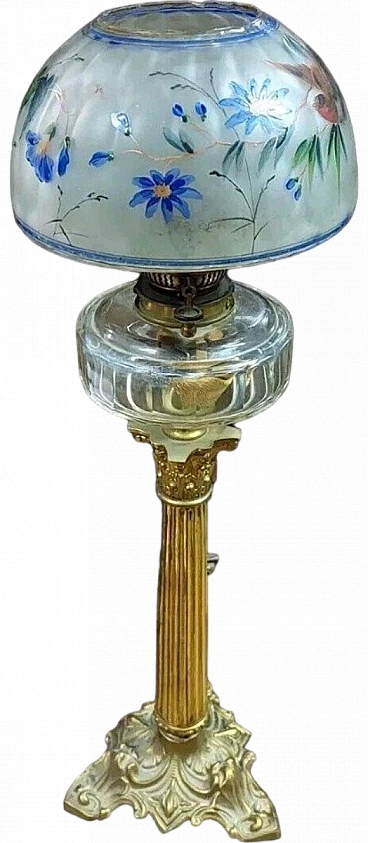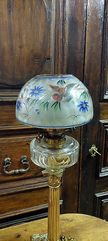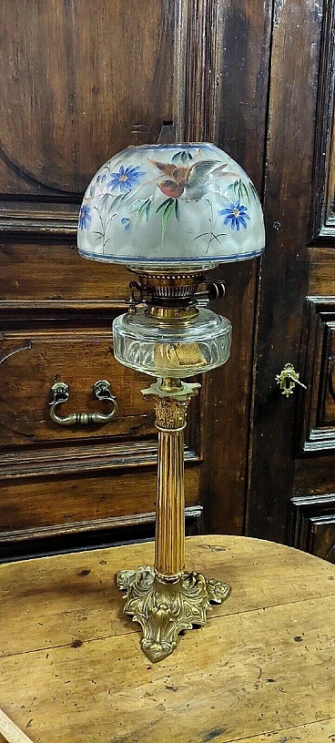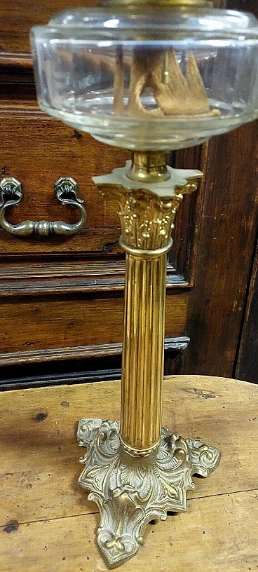 Lampada da tavolo ad olio in bronzo dorato, '800