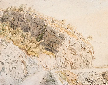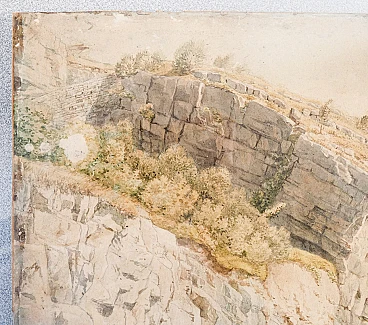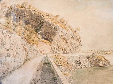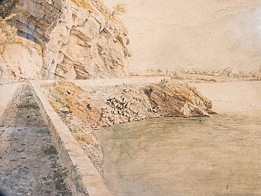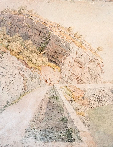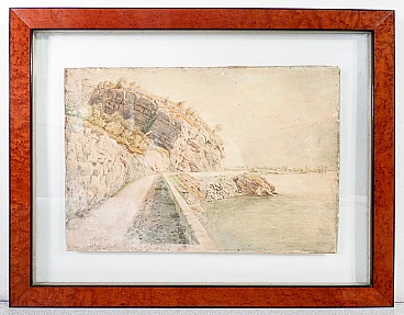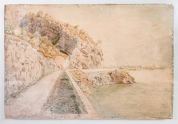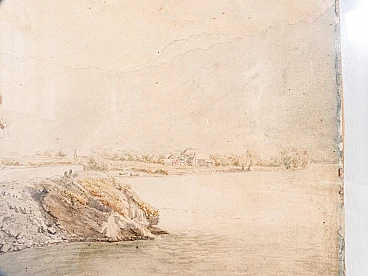 Paesaggio fluviale a Trubbach, dipinto ad acquerello, inizio '900