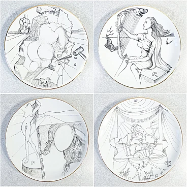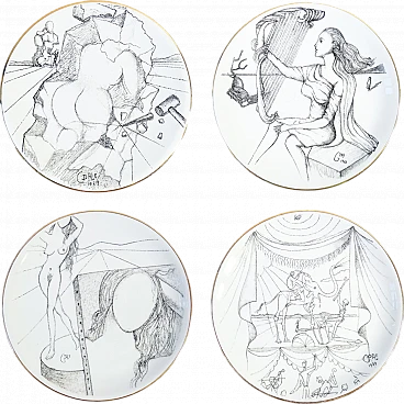 4 Piatti Le Arti con disegni di Salvador Dalì, anni '70