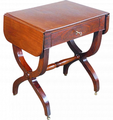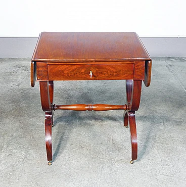 Tavolino da lavoro a bandelle in legno di mogano, '800