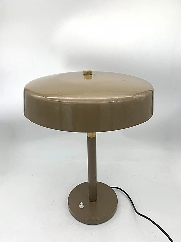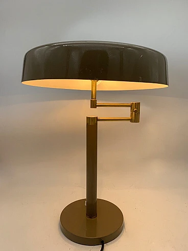 Fantastica e rara lampada da tavolo in buone condizioni generali. Ha i classici segni del tempo essendo del 1940 circa. L'Impianto elettrico è stato rifatto e ha due portalampade in metallo e14. La lampada ha la base in metallo e diverse parti in ottone. Il suo interruttore è nella base della lampada; cavo nero a tre fili con messa a terra.