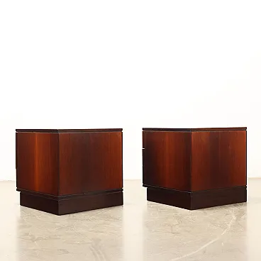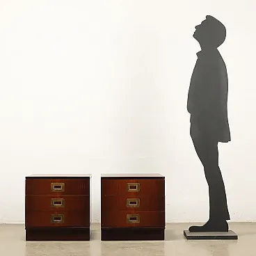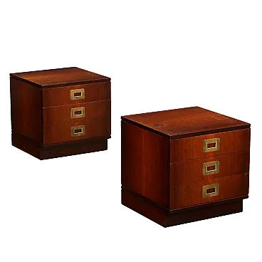 Coppia di comodini in legno e ottone di Ico Parisi, anni '60