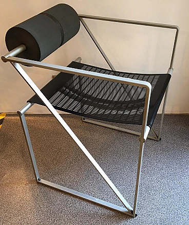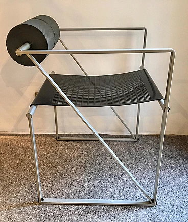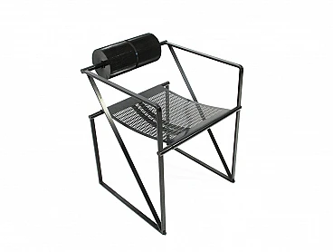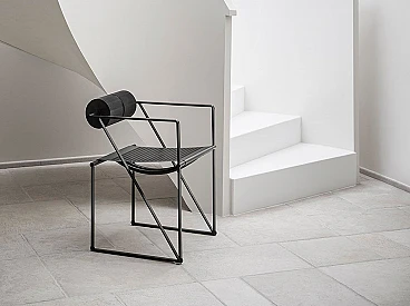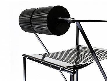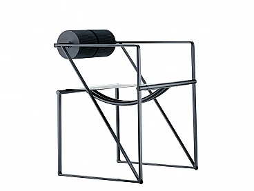 Progettata dal grande architetto ticinese Mario Botta, la sedia Seconda è una vera e propria icona del design made in Italy. La struttura è realizzata in acciaio verniciato, la seduta è in lamiera d’acciaio forata verniciata colore nero con schienale costituito da due elementi cilindrici in poliuretano grigio. Dimensioni: L. 52 cm, P. 58 cm, H. 72 cm. Struttura in acciaio verniciato argento, seduta in lamiera d’acciaio forata verniciata colore nero, elementi cilindrici in poliuretano colore grigio.