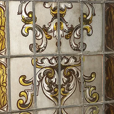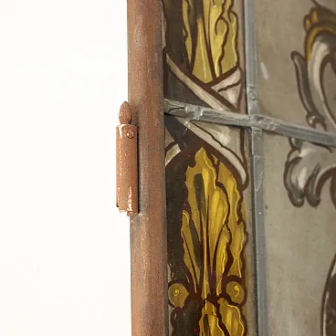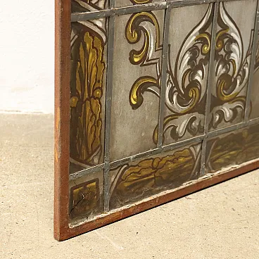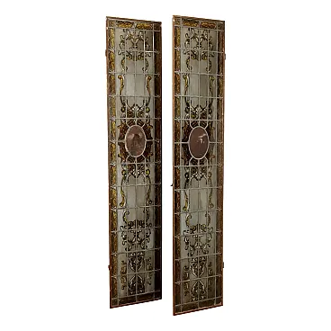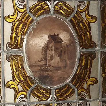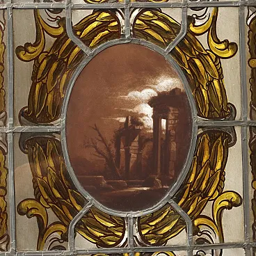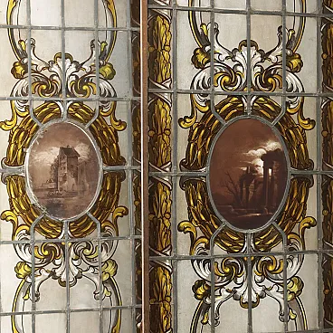 Coppia di vetrate Liberty in vetro piombato dipinto, fine '800