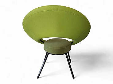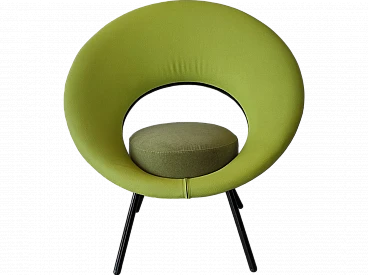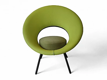 Poltrona imbottita in tessuto verde, anni '80. Condizioni eccellenti, leggeri segni sulle gambe in metallo. Altezza della seduta: 50 cm.