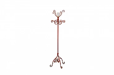 Appendiabiti design Piero Fornasetti, anni '50, in ferro battuto verniciato color rosso corallo, con pigna di vetro opalino. La parte superiore è girevole, segnato dal designer Fornasetti. xmasdeco