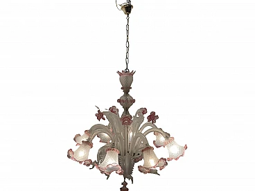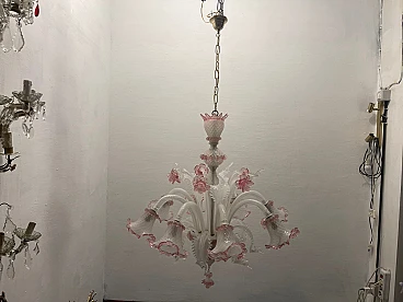 Lampadario in vetro di Murano bianco e rosa, anni '70
