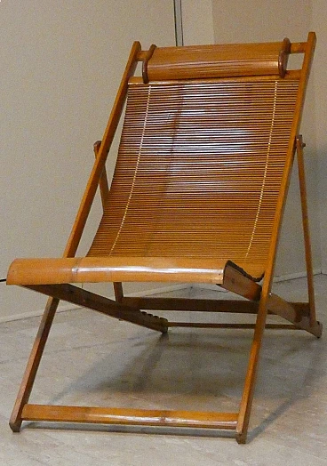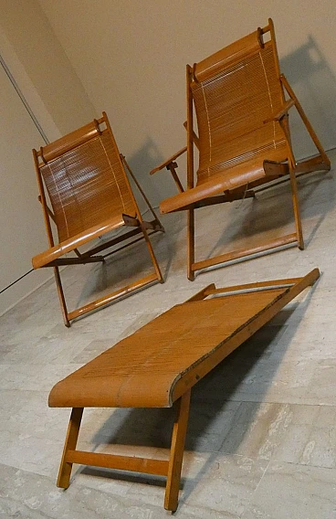 Sedia a sdraio pieghevole e chaise longue in bambù, anni '50