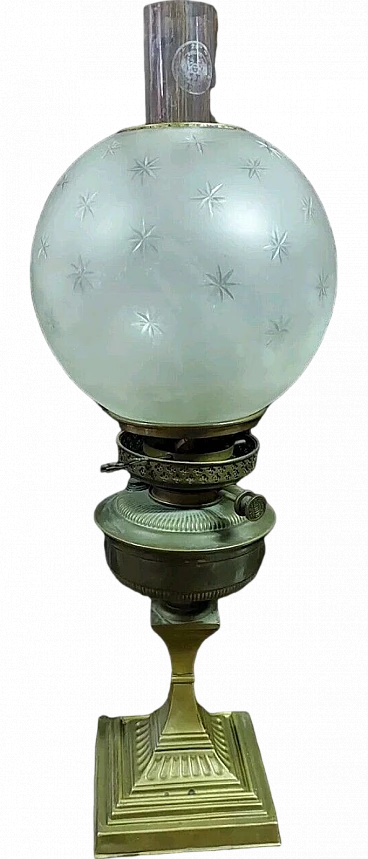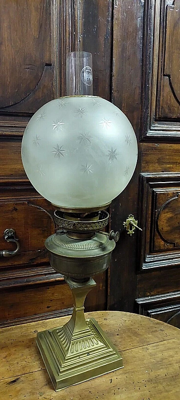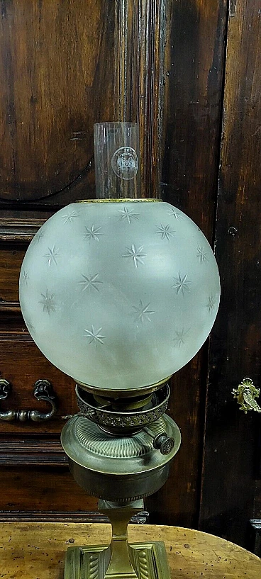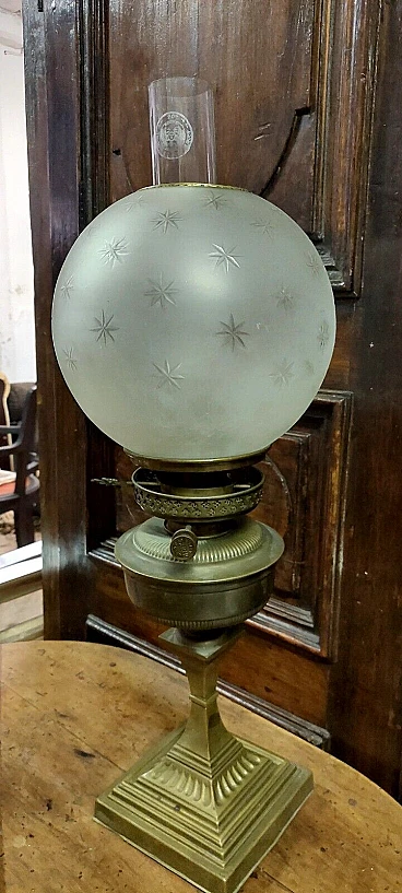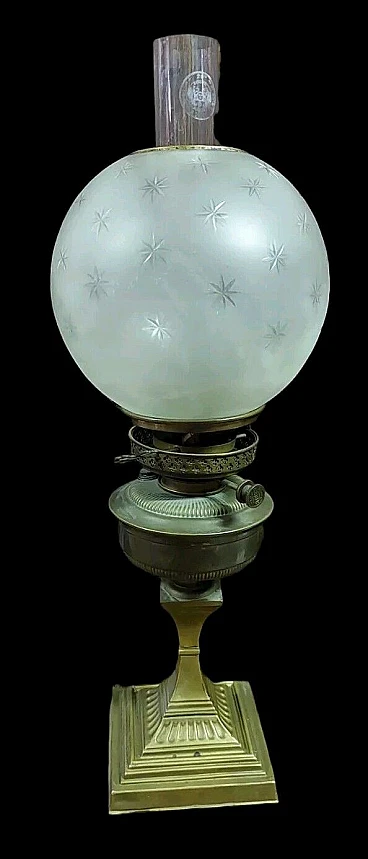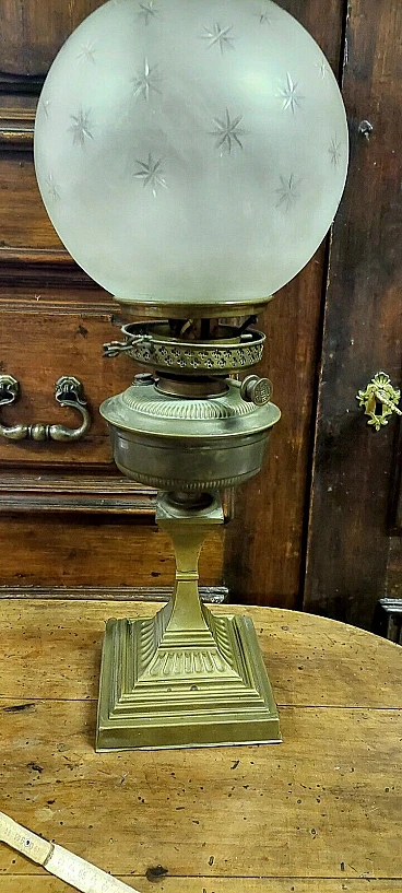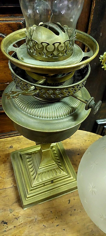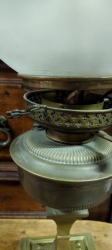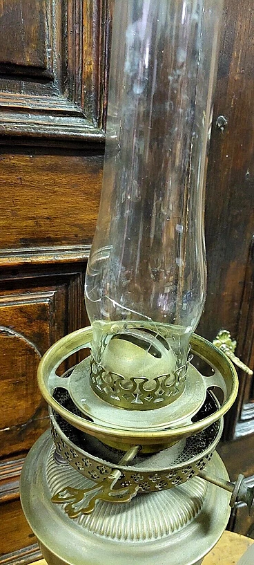 Lampada da tavolo a petrolio in ottone, '800
