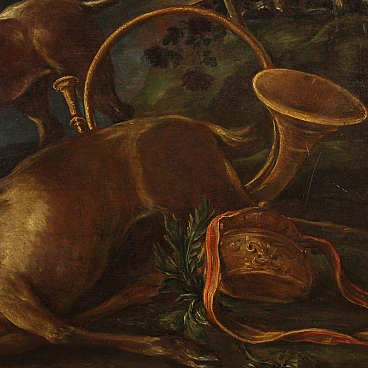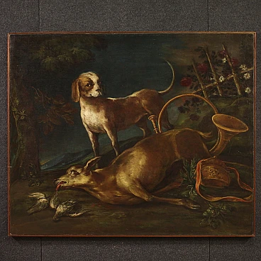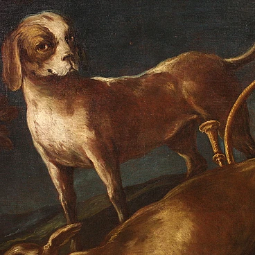 Scena di caccia, dipinto a olio su tela, seconda metà del '700