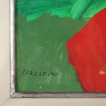 Leonardo Spreafico, monzese, fece parte del gruppo artistico "Garibaldi 89", formatosi nel 1930, sodalizio di artisti milanesi e delle provincie limitrofe, che guardando alle avanguardie europee, contribuirono al rinnovamento della arte italiana. Pittore di paesaggi ma anche di figura, Spreafico grazie al suo vivo senso del colore, propone nelle sue opere una sognante allegoria della vita quotidiana, che diventa solare grazie all'utilizzo di tonalità e cromie inconsuete, ma sempre armoniche tra di loro. In cornice.