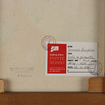 Olio su tela. Firmato in basso a sinistra. Al retro presente etichetta della Galleria d'arte Ponte Rosso di Milano, con titolo e data dell'opera. Presente inoltre timbro notarile ad autentica.