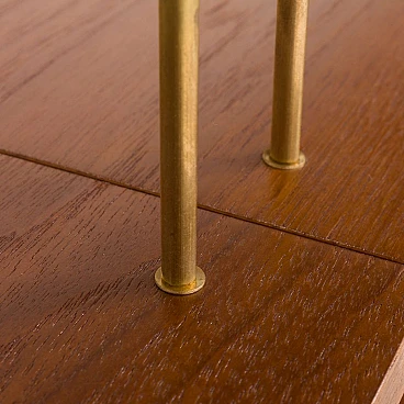 L'unità è composta da: otto ripiani profondi 20 cm; due armadi con ante scorrevoli H: 35 / L: 80 / P: 35 cm; tre binari a muro in legno lunghi 200 cm; ferramenta in ottone. L'unità è stata completamente ristrutturata. Carteggiamo tutte le parti, abbiniamo il colore, aggiungiamo le parti mancanti, quindi finiamo con mordente e olio danese. Potrebbero esserci segni di usura assolutamente minimi, ma somiglierà piuttosto a un pezzo nuovo in termini di qualità. Abbiamo anche controllato attentamente la sua meccanica. Le porte funzionano correttamente e tutte le parti si incastrano tra loro. Cerchiamo di riportare i mobili al loro aspetto migliore, considerando comunque l'età. Clienti da tutto il mondo hanno già avuto fiducia nel nostro lavoro e nei suoi frutti. Se sei nuovo nel settore dei mobili vintage, puoi contattarci per eventuali spiegazioni e primi piani del pezzo. Nel complesso, condizioni eccellenti.