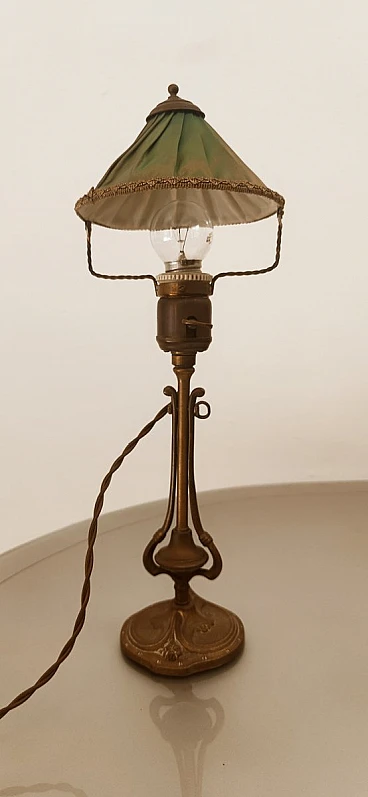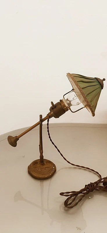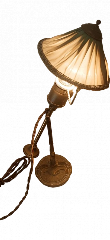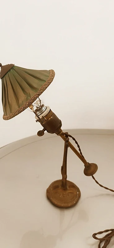 Lampada da tavolo orientabile in ottone e tessuto, anni '30 1