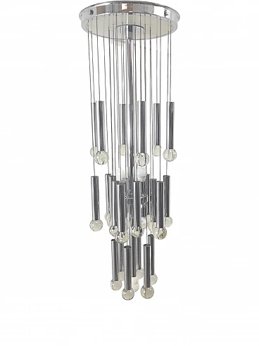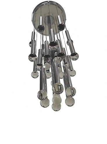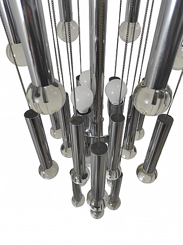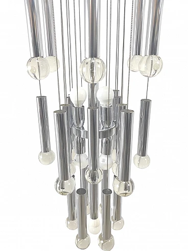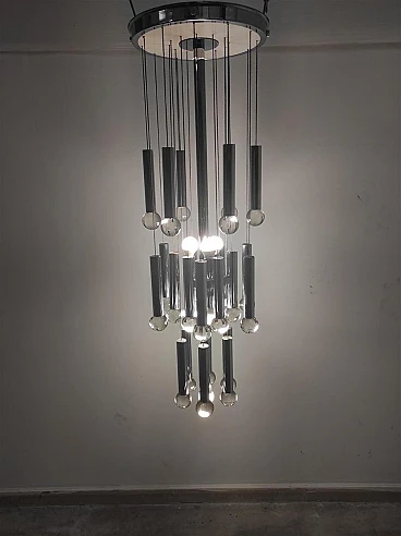 Lampadario a 24 luci in metallo attribuito a Sciolari, anni '70