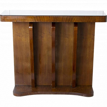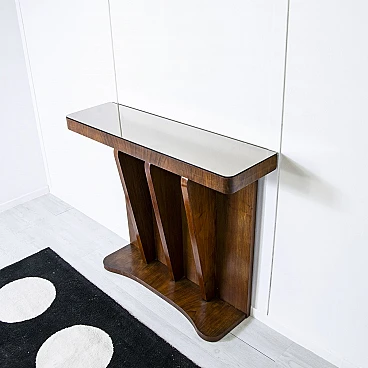 Consolle Art Déco in noce con piano in specchio, anni '30