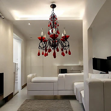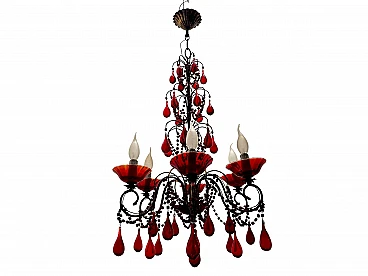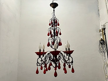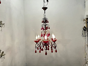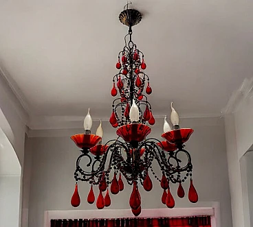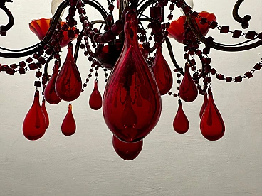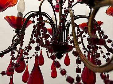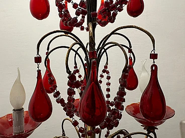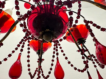 Lampadario in vetro di Murano rosso fiorentino, anni '50