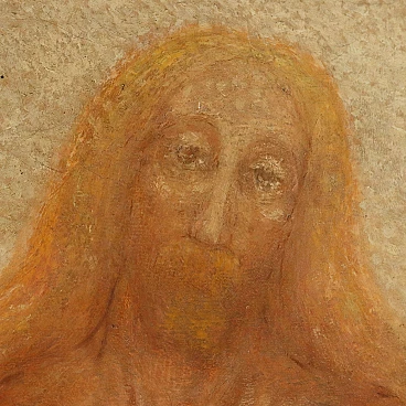 Opera giovanile del noto artista, delinea una figura che, sullo sfondo di una città, spezza la sua spada: l'uomo, i cui tratti iconografici e la tunica rimandano all' immaginario della figura di Gesù, sembra con il suo gesto voler invitare alla pace. Il pittore e incisore genovese Alberto Helios Gagliardo, oltre che un'ampia produzione di paesaggi e ritratti, molti in chiave simbolista, annovera anche diverse opere a contenuto religioso, mitologico o simbolico.