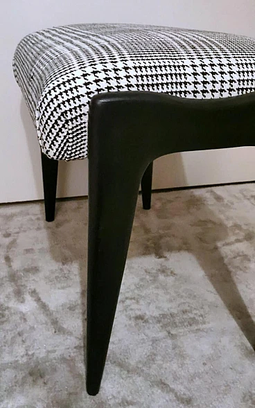 La produzione di mobili di lusso a Cantù è caratterizzata da un'eccellente artigianalità, dall'attenzione ai dettagli e dall'utilizzo di materiali di alta qualità. La città attira anche designer e architetti di fama internazionale che collaborano con gli artigiani locali per creare pezzi unici e personalizzati. Nel creare la nostra panchina, gli artigiani hanno cercato di ideare un piccolo oggetto dalle linee semplici e decise, dando vita a un pezzo dall'eleganza senza tempo. Il suo design bilancia austerità e rigore e la sua linearità esagerata conferisce alla panchina un carattere dinamico ed elegante. Recentemente, la panchina è stata restaurata da un vecchio maestro artigiano di Prato, che ha sapientemente realizzato a mano il nuovo rivestimento del cuscino utilizzando un tessuto speciale e importante: un pesante lino Principe di Galles della collezione Dedar.