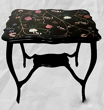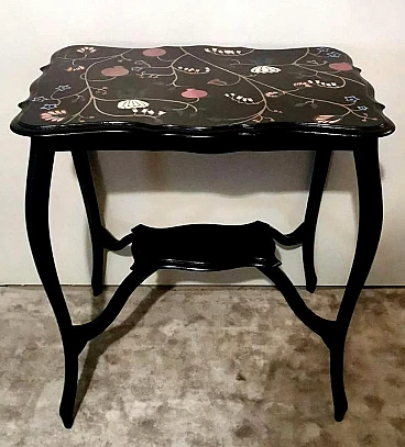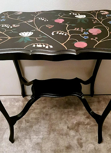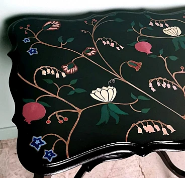 Le gambe hanno la classica forma morbida a "cabriole". Il tavolo da tè è molto elegante ma anche austero; per questo motivo, di recente, un abile pittore ha dipinto a mano dei disegni floreali colorati