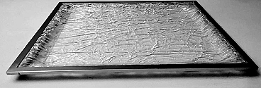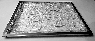 Questo raffinato e originale vassoio in plexiglass presenta una struttura lineare realizzata con barre di ottone massiccio nichelato tramite un processo di galvanizzazione. La parte in plexiglass è saldamente incastrata e incollata al retro della struttura (vedi foto del retro del vassoio). Questo assemblaggio crea una leggerezza estetica e conferisce al vassoio un aspetto elegante e moderno.