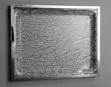 Desio e Cantù, famose per la produzione di mobili di alta qualità. Molte aziende di arredamento di questa attiva zona della Lombardia hanno prodotto pezzi in stile Willy Rizzo, caratterizzati da una meticolosa attenzione ai dettagli e dall'uso di materiali pregiati. Willy Rizzo (1928-2013) è particolarmente noto per i suoi mobili in ottone e vetro. Rizzo ha iniziato la sua carriera come fotografo, lavorando per importanti riviste di moda e ritratti, tra cui "Paris Match". La sua esperienza nel campo della fotografia ha influenzato il suo occhio per il design e la composizione, portandolo a creare mobili che combinassero la funzionalità con un'estetica visivamente accattivante. Nel corso della sua carriera Willy Rizzo ha collaborato con diverse aziende e laboratori artigianali di prestigio, contribuendo a portare i suoi disegni unici sul mercato internazionale. Gli oggetti di Rizzo sono spesso caratterizzati da linee pulite e geometriche, con cornici in ottone lucidate a specchio per un effetto lussuoso e spesso nichelate. Gli artigiani che hanno creato questo vassoio hanno seguito con estrema abilità le linee guida del design di Rizzo, giocando con materiali contrastanti