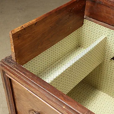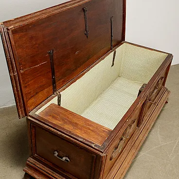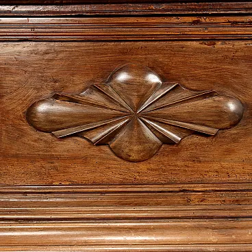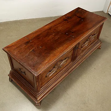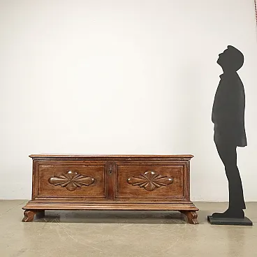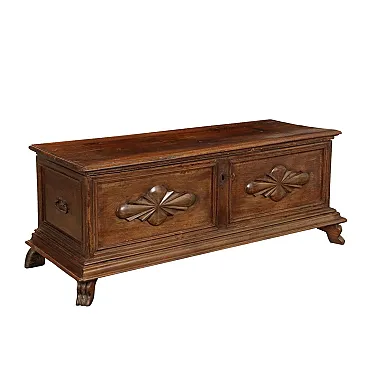 Cassapanca in noce con fronte bipartito e piedi leonini, '700