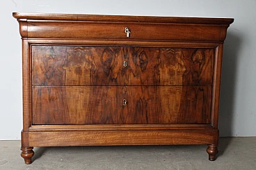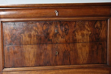 Comò cappuccino Luigi Filippo in noce massello e radica, 1840