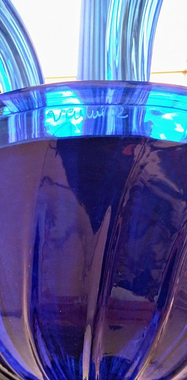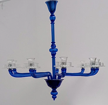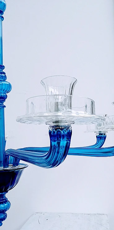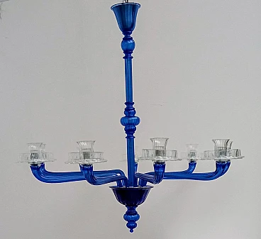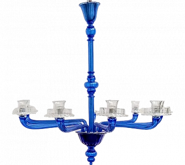 Lampadario in vetro di Murano blu e trasparente di Venini, 1993