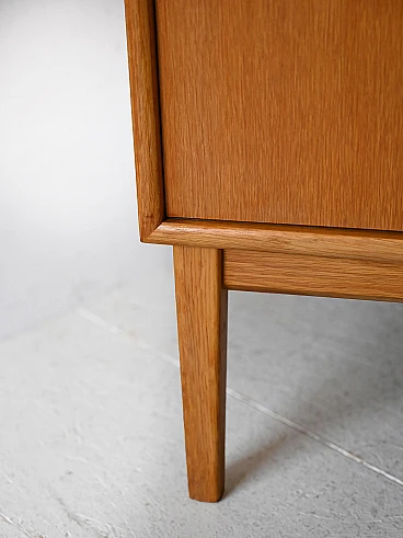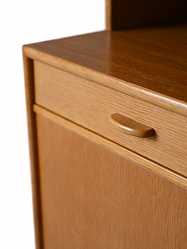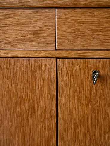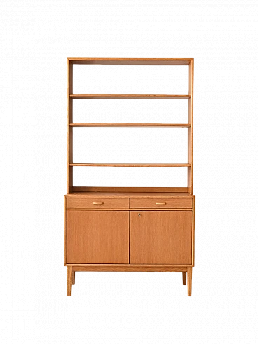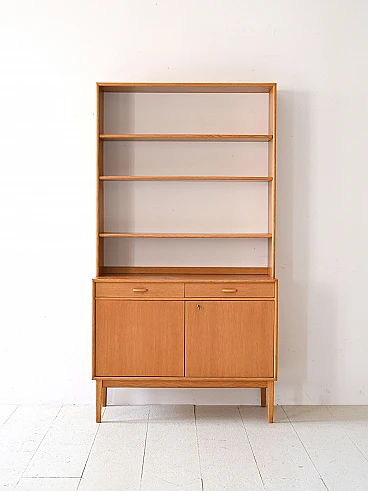 Libreria in legno di rovere con vano chiuso e mensole regolabili. Questa elegante libreria in legno di rovere combina una parte inferiore chiusa da ante con una parte superiore a giorno, offrendo una soluzione di arredo versatile e di design. La parte inferiore della libreria presenta un ampio vano chiuso da due ante a battente dotate di serratura. Questo spazio protetto può essere utilizzato per riporre libri, documenti o altri oggetti che si desidera tenere lontani dalla vista. Inoltre sono presenti due pratici cassetti. La parte superiore della libreria è invece una libreria a giorno, composta da tre mensole ad altezza regolabile. Questa configurazione offre flessibilità nell'organizzazione degli spazi, permettendo di adattare le mensole alle diverse dimensioni dei libri o degli oggetti da esporre. L'intera struttura della libreria è realizzata in pregiato legno di rovere, noto per la sua bellezza naturale, la sua durabilità e la sua resistenza. Il caldo tono del rovere aggiunge eleganza e un tocco di classicità all'arredo. Il suo design essenziale e la scelta di materiali di qualità la rendono un elemento d'arredo in grado di integrarsi con stile in contesti d'interior design sia classici che moderni. Buone condizioni. È stato fatto un restauro conservativo utilizzando materiali naturali. Potrebbe presentare dei segni del tempo. Per piacere presta attenzione alle fotografie.