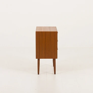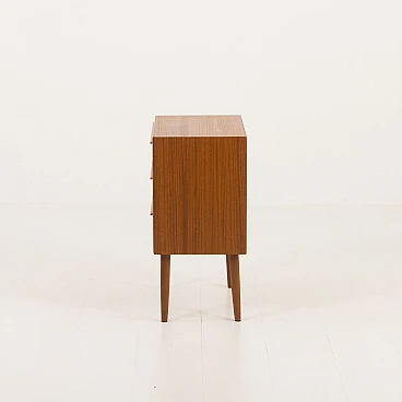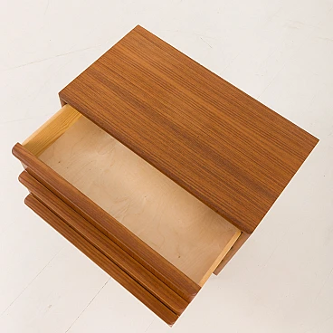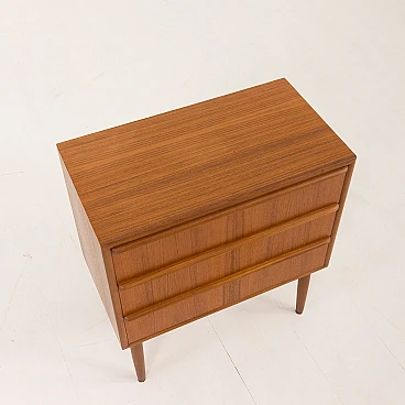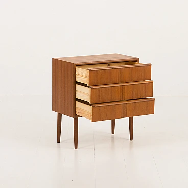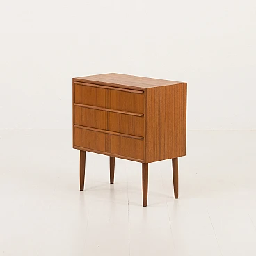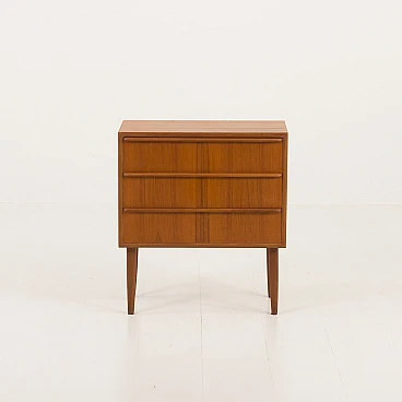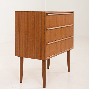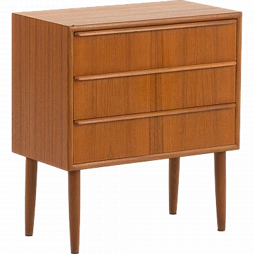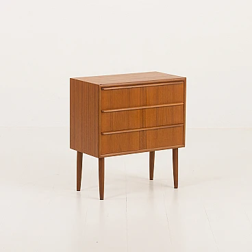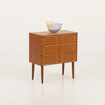 Piccola cassettiera in teak con tre cassetti e maniglie in teak massello realizzata da una manifattura danese negli anni '60.