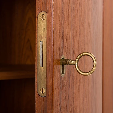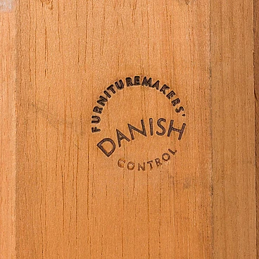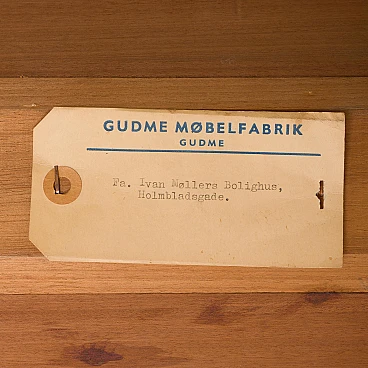 Realizzato in legno di teak di alta qualità, il mobile ha una finitura ricca e calda che mette in risalto le venature naturali e la bellezza del legno. L'etichetta del produttore è conservata sul retro del mobile, aumentandone l'autenticità e il valore.
