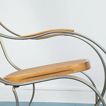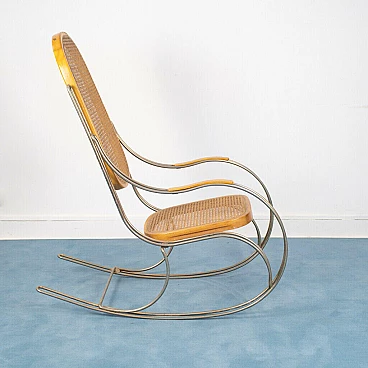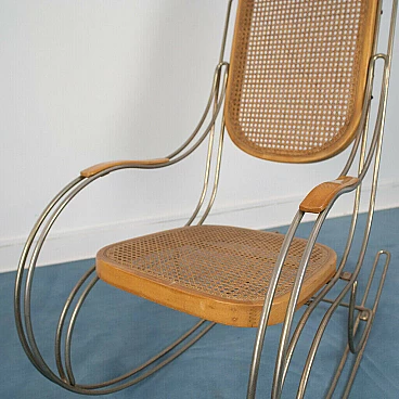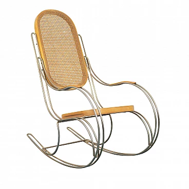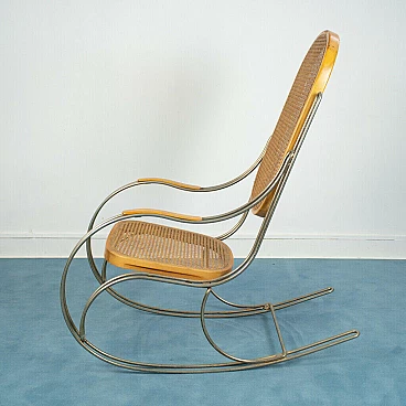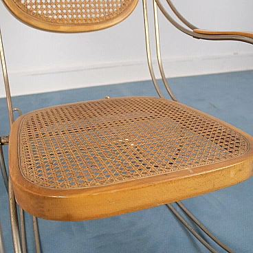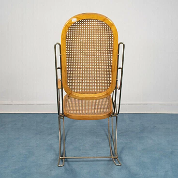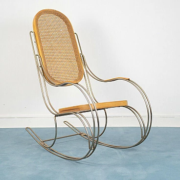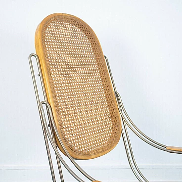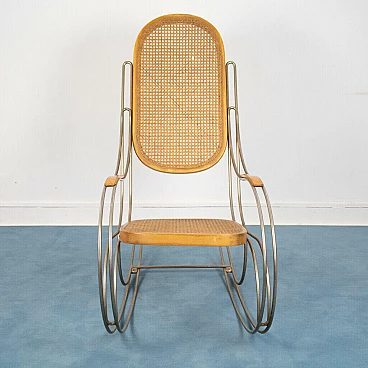 Sedia a dondolo in acciaio e paglia di Vienna, anni '70