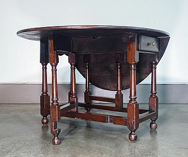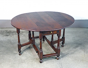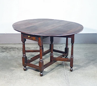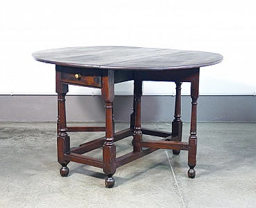 Tavolo a bandelle con cassettino in rovere massello, '800