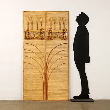 Appenbiabiti da parete in bambù e bambù intrecciato, anni '80