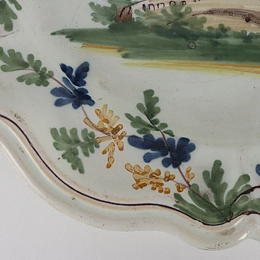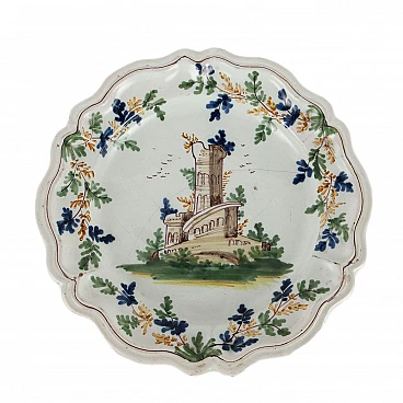 Piatto in maiolica con bordo modanato ed isola con piante, '700
