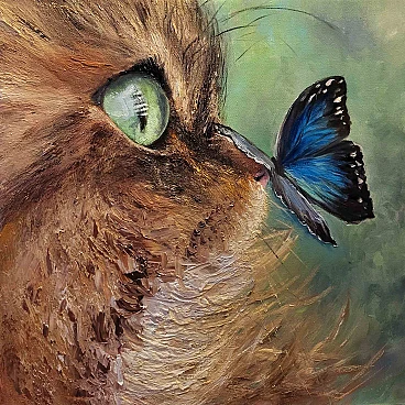 Elena Mardashova, Gatto, Olio su tela Anni 2000