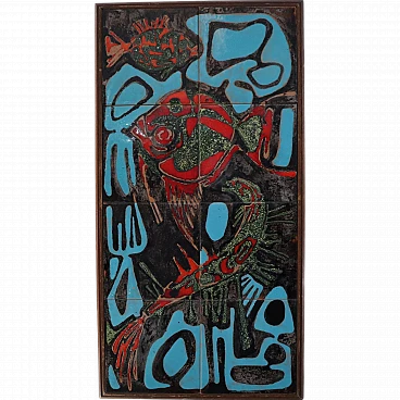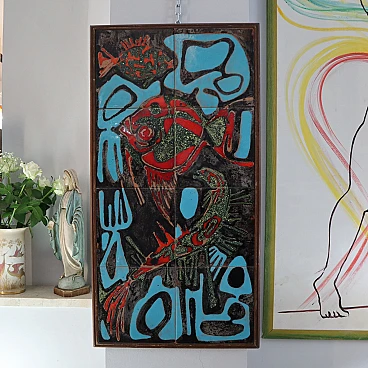 Quadro con piastrelle in rilievo smaltate, anni '70