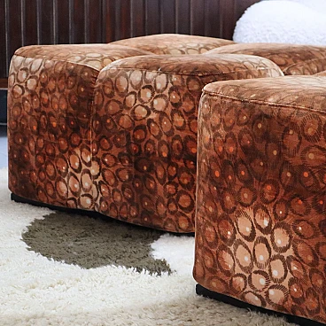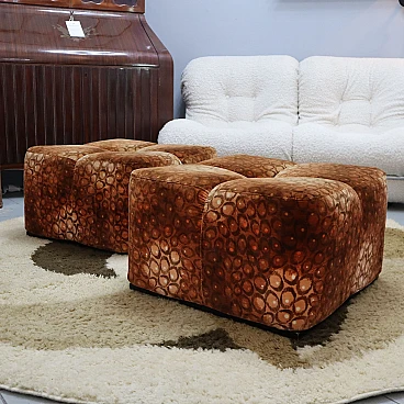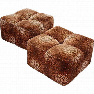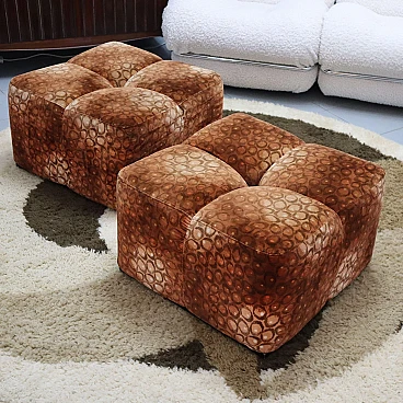 Coppia di Pouf quadrati in tessuto geometrico arancione, anni '70