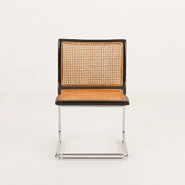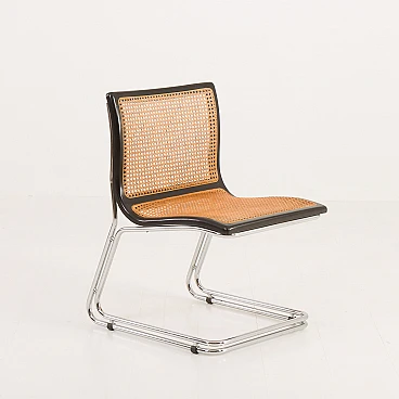 Sedia Cantilever in acciaio cromato e paglia di Vienna, anni '70