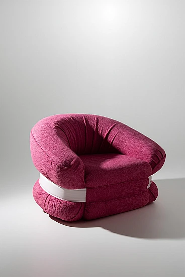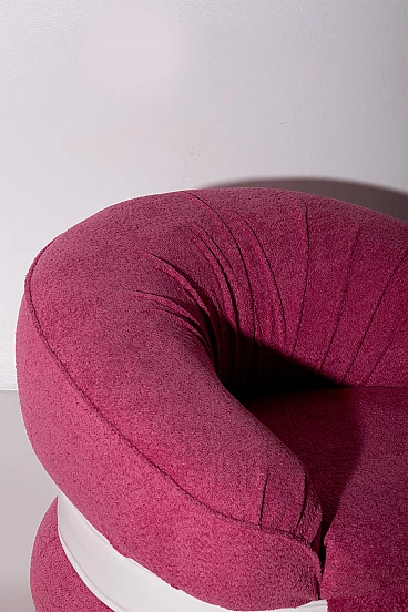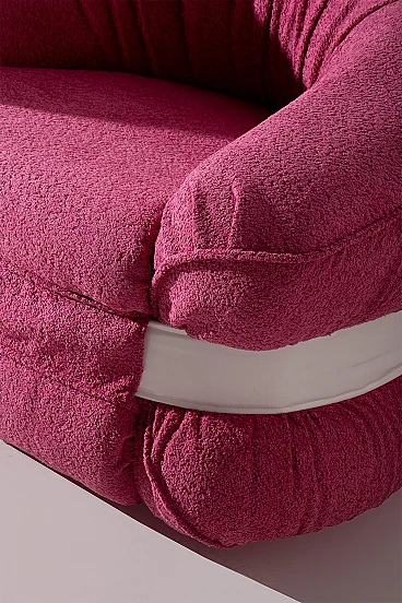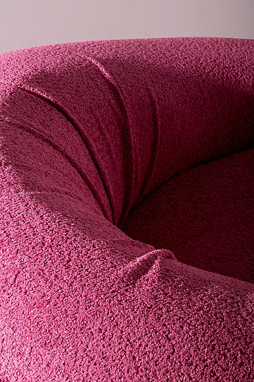 Questa splendida coppia di poltrone, disegnata da Adriano Piazzesi e prodotta da Tre D Italia negli anni Settanta, rappresenta una vera e propria icona del design italiano dell'epoca. Le forme morbide e avvolgenti delle poltrone creano un'armonia visiva che invita al relax e alla contemplazione. Interamente rivestite in un lussuoso bouclé rosa, queste poltrone emanano nuova vita, fondendo il fascino retrò con un tocco contemporaneo. Il tessuto bouclé, noto per la sua texture ricca e accogliente, aggiunge una dimensione tattile che amplifica il piacere di sedersi e rilassarsi. La dolce e vibrante tonalità rosa infonde un senso di gioia e leggerezza, rendendo queste poltrone un pezzo unico e distintivo in qualsiasi ambiente.