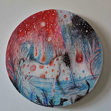 Penna su tela tonda.Certificato di autenticità dell'Artista.