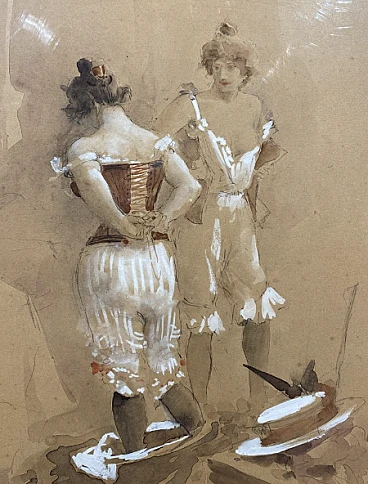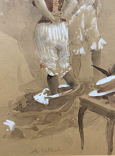 A. Callet, Coppia di giovani in déshabillé, disegno a tecnica mista