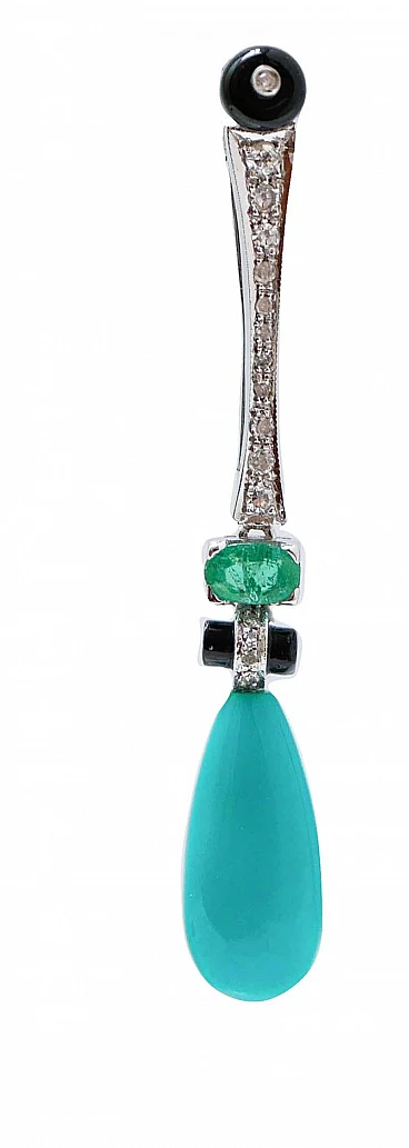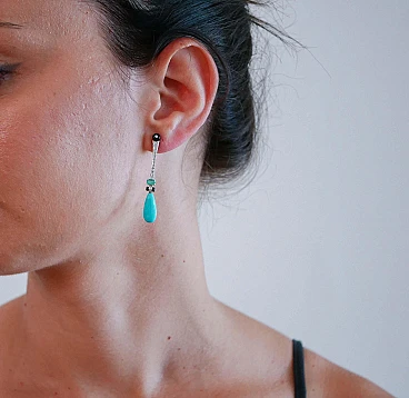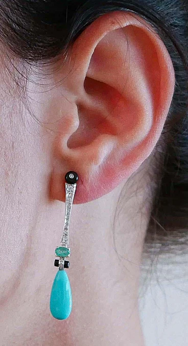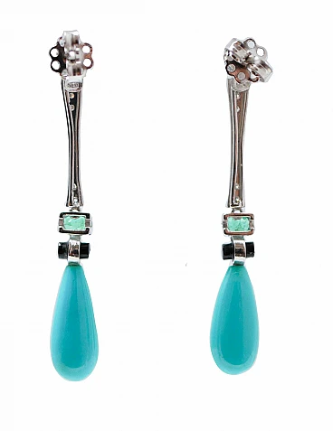Coppia di Orecchini in platino, turchese, onice e diamanti, anni 2000