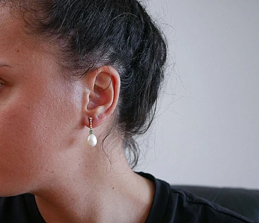POLITICA DI SPEDIZIONE: A questo ordine non verrà aggiunto alcun costo aggiuntivo. Le spese di spedizione sono totalmente a carico del venditore (dazi doganali inclusi). PS: QUESTA POLITICA NON È APPLICABILE AGLI ARTICOLI A PREZZO FISSO, AGLI ARTICOLI IN ASTA, ALLE PROMOZIONI IN CORSO E AGLI ARTICOLI IN SALDO. Incredibili orecchini con struttura in oro rosa 14 kt montati con diamanti per tutta la lunghezza. In basso, uno smeraldo e, come ciondolo, una perla. Diamanti 0,26 ct Smeraldi 0,35 carati Perle 4.40 gr Peso totale 5.80 gr RF ++RGE RK.GUH Per qualsiasi informazione, sentiti libero di contattare il venditore attraverso il centro messaggi.