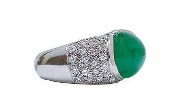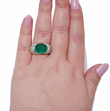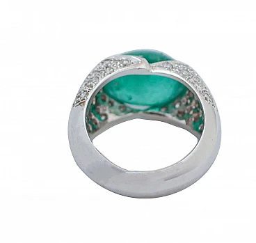 Anello in oro bianco 18 carati con smeraldo e diamanti, anni '60