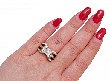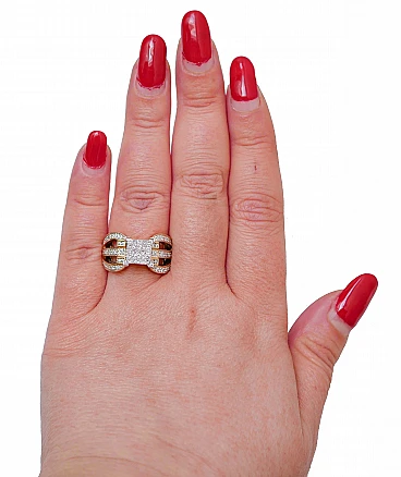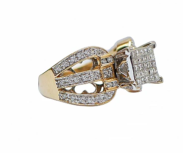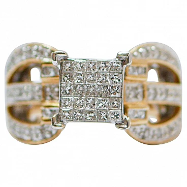 Anello in oro giallo 14 carati e oro bianco con diamanti, anni '60