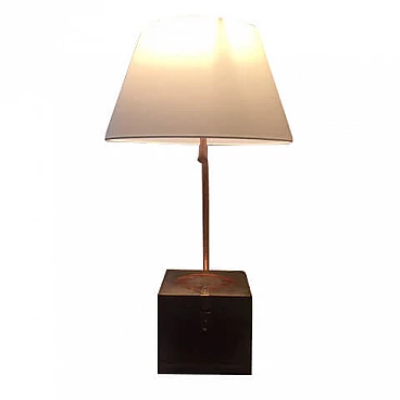 Lampada da tavolo con scrigno indiano e inserti in ottone, anni '80