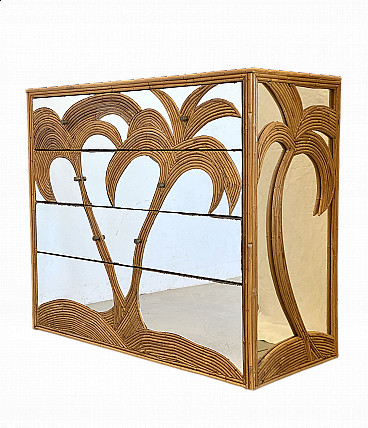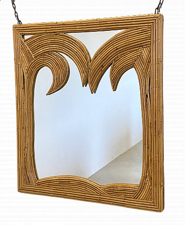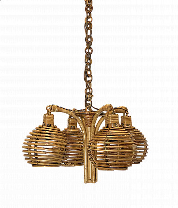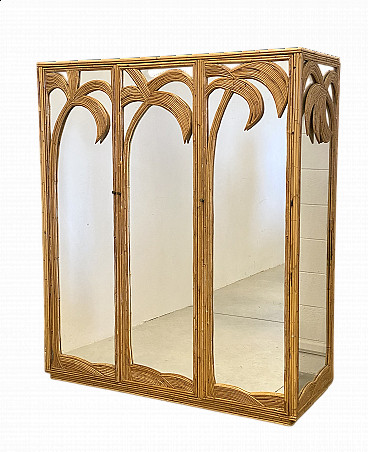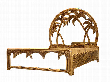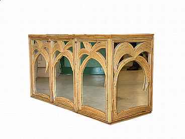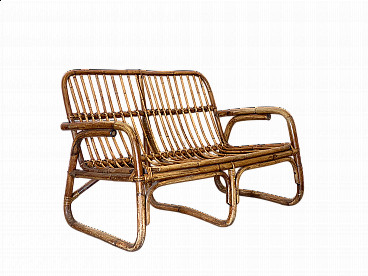 Coppia di sgabelli da bar in bambù e similpelle, anni '70
