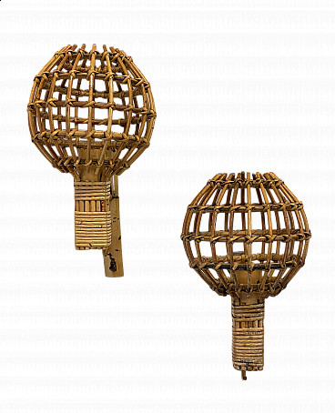Coppia di applique in ferro dorato a mazzo di spighe di grano, anni '60